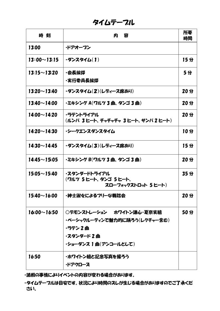 今回のチャリティーダンスパーティーは如何でしたか?2025 三笠宮杯 入賞!! のホワイトン謙心・夏奈実組による模範演技と自由演技の祭典はダイナミックで素晴しかったですね。また勉強になりました。役員の皆さまは会場準備や後片付けにお疲れ様でした。次回も楽しいパーティーが開催出来ます様に皆さまのご協力宜しくお願い致します。