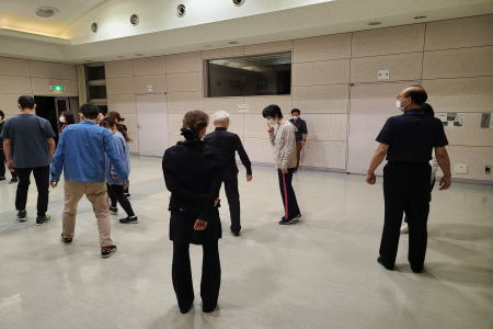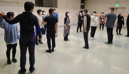 2021年10月23日(土)18:00~20:00、成瀬駅前市民センター4階の多目的ホールにおいて、町田市 医療法人社団泰大会様の職員の方10名の御参加をいただき、《社交ダンス》の体験会を実施致しました。当連盟からは理事長夫妻の他2カップルが参加致しました。《デモンストレーション》の後、《お互いの自己紹介》、《リズム体操》、《ジルバ&ブルース》という流れで体験会を行い無事終了致しました。あっと言う間の2時間の楽しい体験会でした。今回の《社交ダンス》体験会の主旨は、「フレイル予防と社交ダンス」と言うテーマにおいて開催致しました。医療法人社団泰大会様と当連盟にとって大変意義のある体験会であったのではないでしょうか。